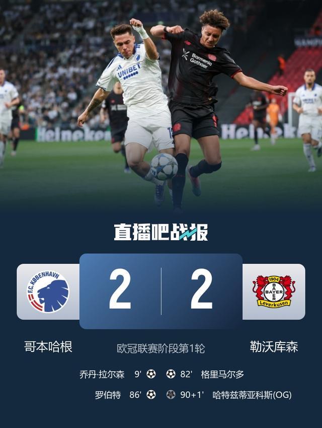 欧冠-勒沃库森2-2哥本哈根 埃切维里造绝平乌龙格里马尔多破门