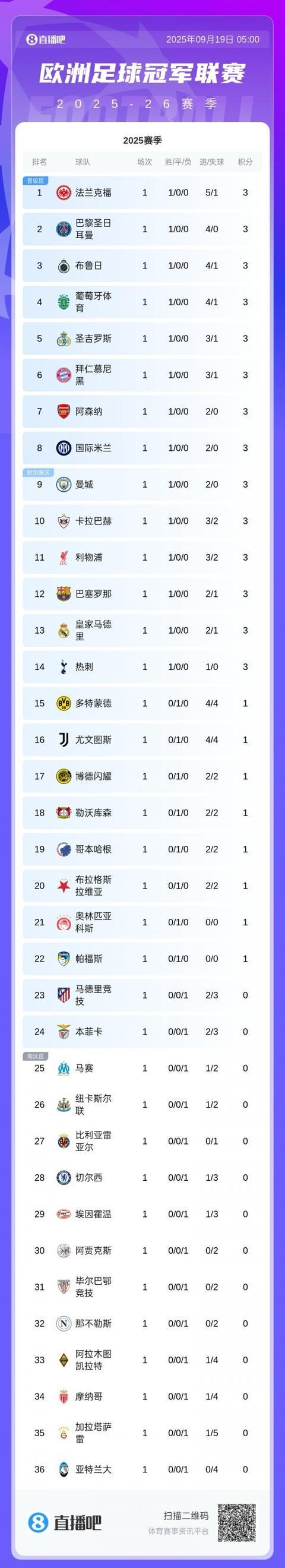 直播吧09月19日宣 欧冠首轮结束全部比赛,利物浦、巴萨、阿森纳和巴黎是夺冠最大热门。