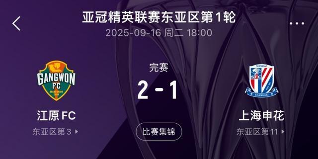 昨天的比赛中,申花同样是在先进一球的情况下遭江原连进两球逆转。